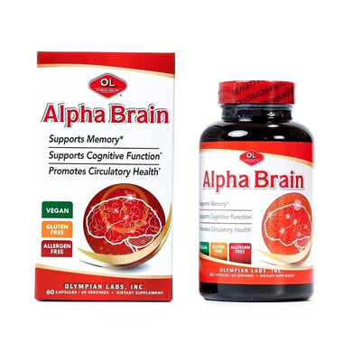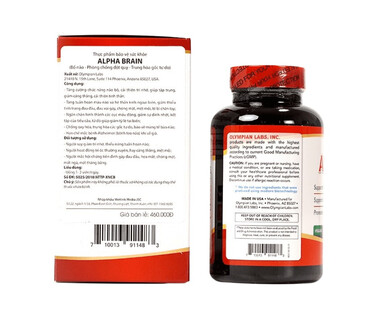 Alpha Brain (60 viên) – Viên nang hỗ trợ tuần hoàn máu và trí nhớ (550mg ± 7.5%) chứa Ginkgo Biloba 120mg (24% Flavones Glycosides, 6% Terpenes), Bacopa Monnieri 100mg, Choline bitartrate 30mg, Alpha Lipoic Acid 20mg, bột gừng và đu đủ, cùng phụ liệu an toàn. Sản phẩm giúp tăng cường tuần hoàn máu, cải thiện trí nhớ, phù hợp cho người trưởng thành. Uống 1 viên/ngày trước ăn. Không dùng cho người mẫn cảm, phụ nữ có thai/cho con bú, người có nguy cơ xuất huyết, rong kinh, hoặc trẻ dưới 12 tuổi.