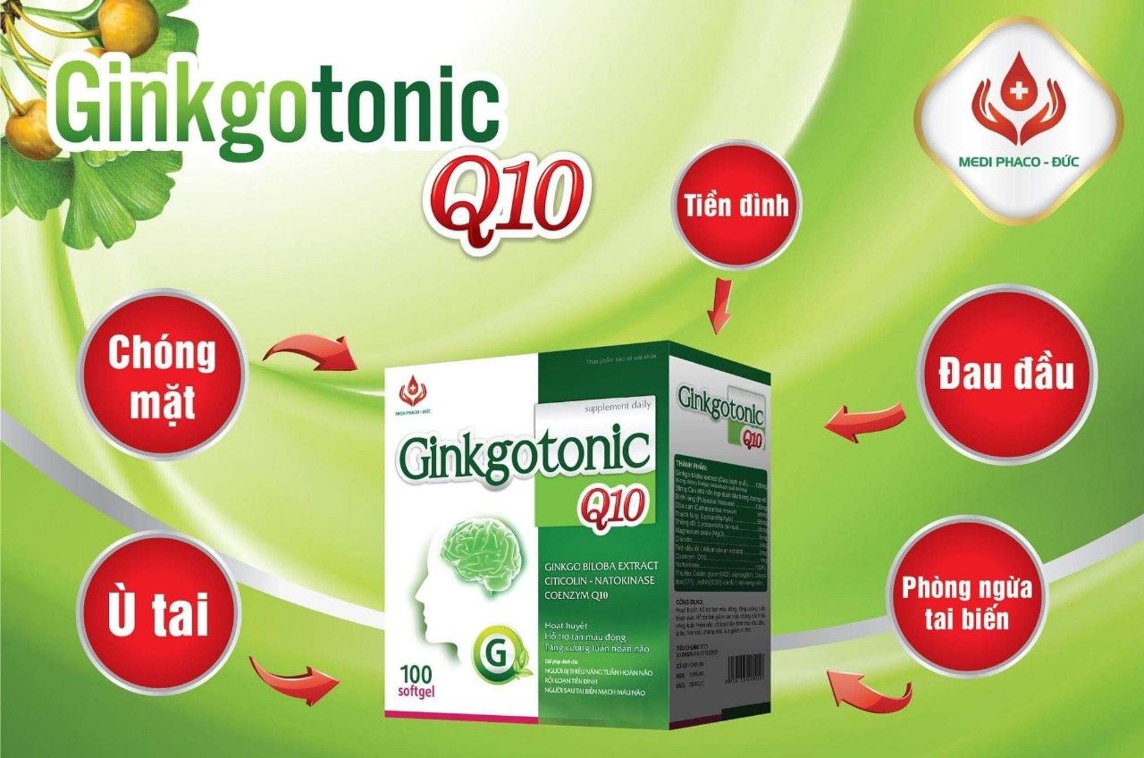 – Viên uống GINKGO TONIC Q10 hỗ trợ điều trị dự phòng tai biến mạch máu não khi chưa xảy ra tai biến mạch máu não hoặc hỗ trợ điều trị khi đã có tai biến xảy ra.