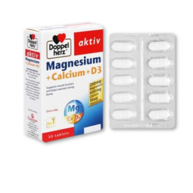 Thực phẩm bảo vệ sức khoẻ Magnesium + Calcium + D3 Doppelherz Aktiv hỗ trợ xương chắc khỏe, bổ sung vitamin D3, canxi và magie (Hộp 30 viên)SẢN PHẨM