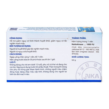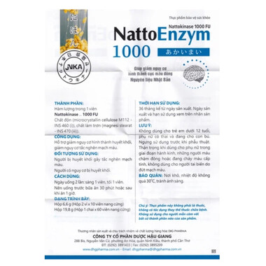 NattoEnzym 1000 (20 viên) là thực phẩm bảo vệ sức khỏe chứa enzyme Nattokinase 1000 FU, chiết xuất từ đậu nành lên men theo công nghệ Nhật Bản. Sản phẩm hỗ trợ làm tan cục máu đông, cải thiện tuần hoàn máu, giảm nguy cơ tắc mạch và đột quỵ.