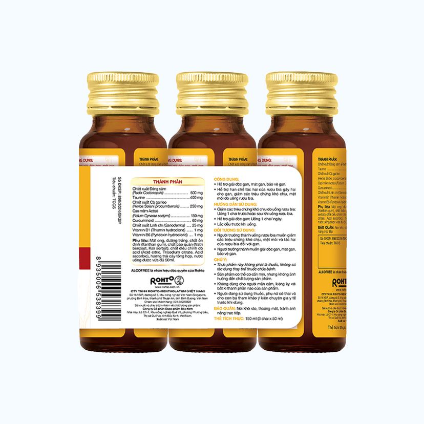 Thực phẩm bảo vệ sức khỏe Rohto Alcofree Giúp giảm các triệu chứng khó chịu do uống rượu bia, hỗ trợ giải độc gan (Lốc 3 chai 50ml)