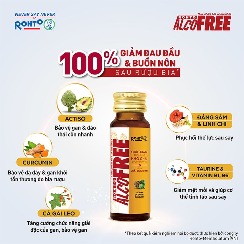 Thực phẩm bảo vệ sức khỏe Rohto Alcofree Giúp giảm các triệu chứng khó chịu do uống rượu bia, hỗ trợ giải độc gan (Lốc 3 chai 50ml)Thực phẩm bảo vệ sức khỏe Rohto Alcofree Giúp giảm các triệu chứng khó chịu do uống rượu bia, hỗ trợ giải độc gan (Lốc 3 chai 50ml)