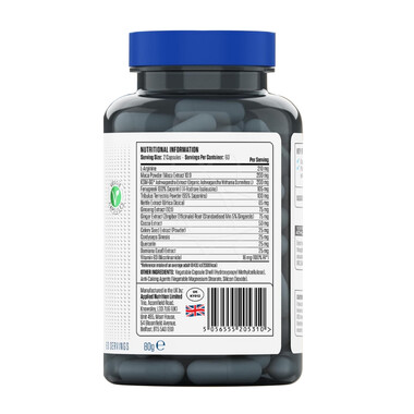 Sản phẩm chứa công thức tiên tiến từ 11 hoạt chất chiết xuất thảo dược như KSM-66® Ashwagandha, Maca 10:1, Tribulus, Fenugreek 60% saponin, nhân sâm, gừng chuẩn hóa 5% gingerols… kết hợp cùng L-Arginine và Vitamin B3 hỗ trợ tăng lưu thông máu, tăng ham muốn, giảm mệt mỏi và nâng cao phong độ nam giới theo hướng tự nhiên, bền vững.
