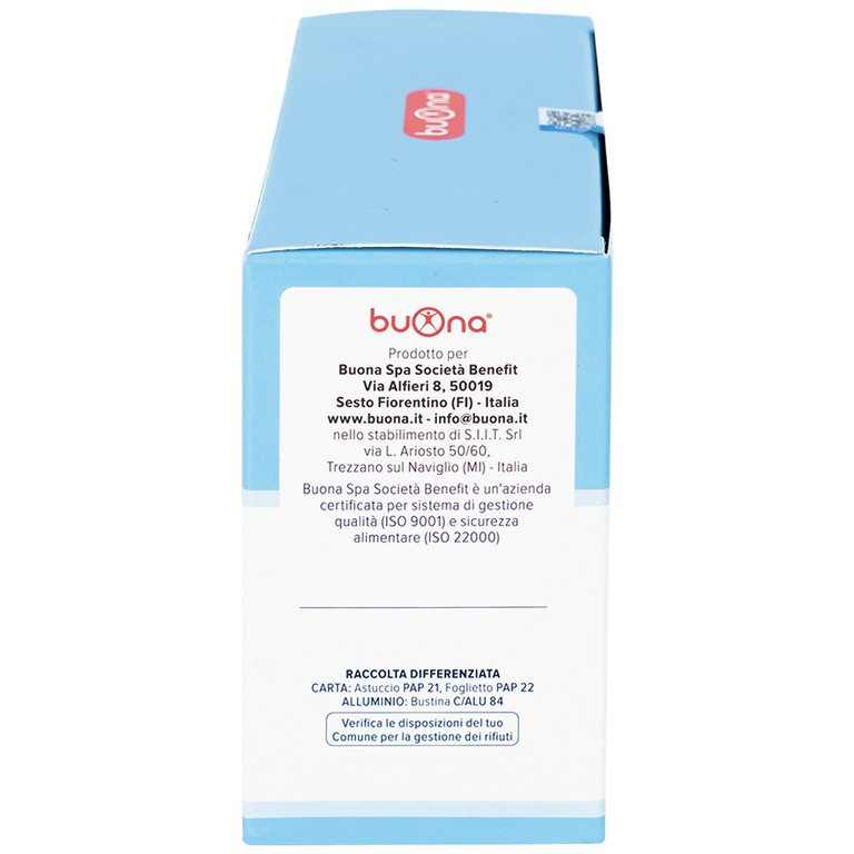Buona là thương hiệu của những sản phẩm bảo vệ sức khỏe dành riêng cho trẻ sơ sinh và trẻ nhỏ của hãng dược phẩm Steve Jones (Ý). Ưu tiên hàng đầu của Buona là giải pháp khoa học, với trọng tâm là trẻ em. Vì vậy, mỗi sản phẩm của Buona đều hướng đến những tiêu chí cao nhất dành cho trẻ em. Dựa trên 4 nguyên tắc chính: