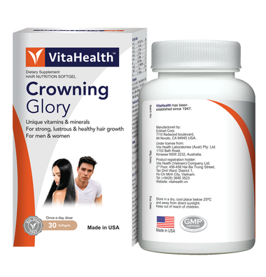 Thực phẩm bảo vệ sức khỏe VitaHealth Crowning Glory giúp tóc bóng mượt và chắc khỏe (30 viên)Thực phẩm bảo vệ sức khỏe VitaHealth Crowning Glory giúp tóc bóng mượt và chắc khỏe (30 viên)