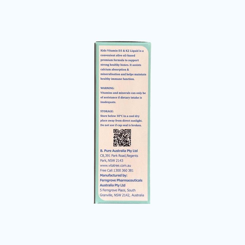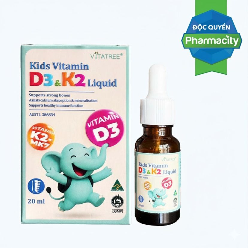 Thực phẩm bảo vệ sức khỏe Vitatree Kids Vitamin D3 & K2 Liquid (Chai 20ml)SẢN PHẨM