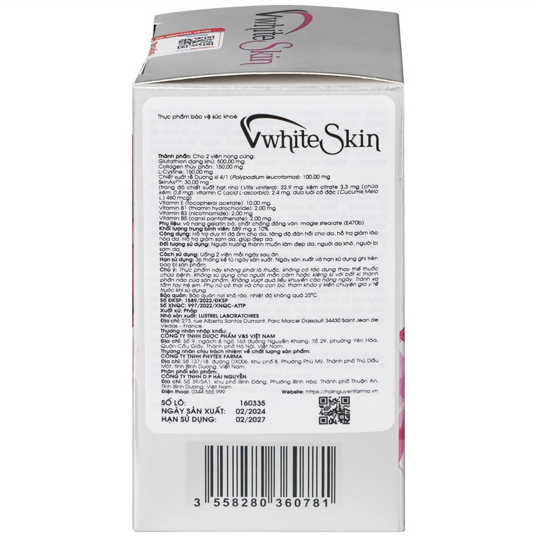 Thực phẩm bảo vệ sức khỏe VwhiteSkin hỗ trợ duy trì độ ẩm cho da, tăng độ đàn hồi cho da (30 viên)