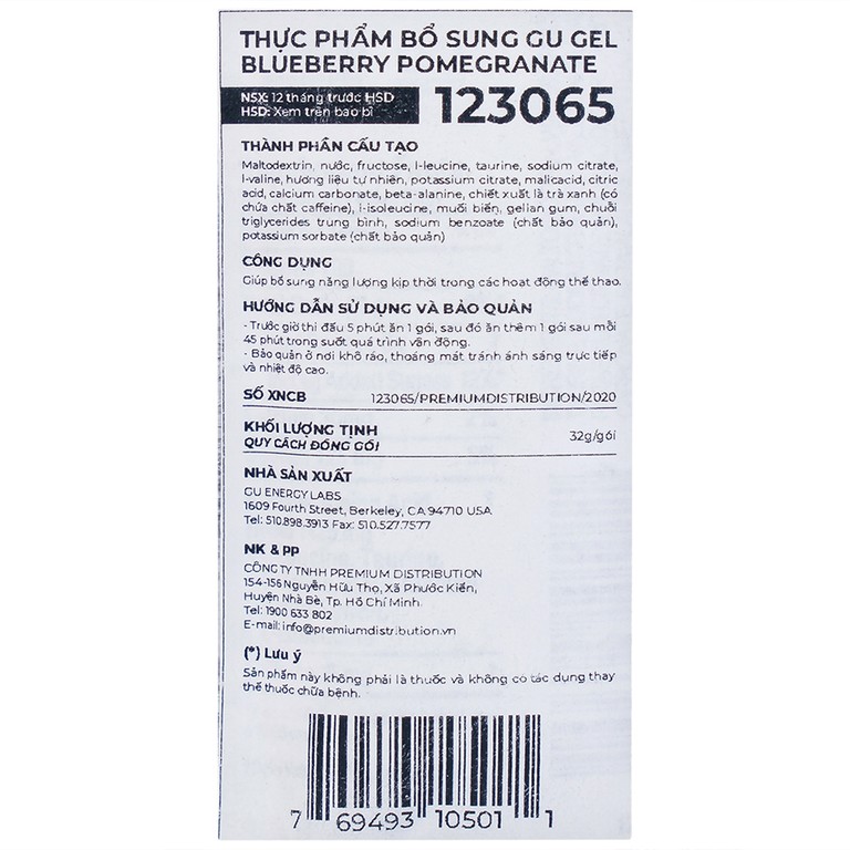 Thực phẩm bổ sung GU Gel Blueberry Pomegranate bổ sung năng lượng trong hoạt động thể thao (32g)Thực phẩm bổ sung GU Gel Blueberry Pomegranate bổ sung năng lượng trong hoạt động thể thao (32g)