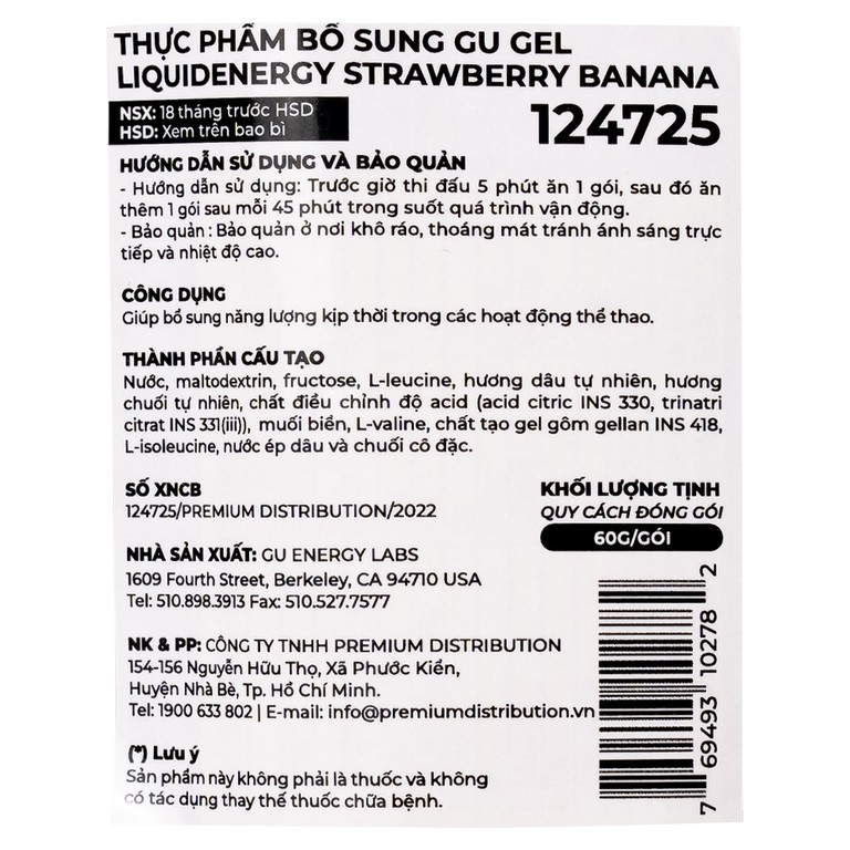 Thực phẩm bổ sung GU Gel Liquid Energy Strawberry Banana 60g bổ sung năng lượng trong các hoạt động thể thaoSẢN PHẨM
