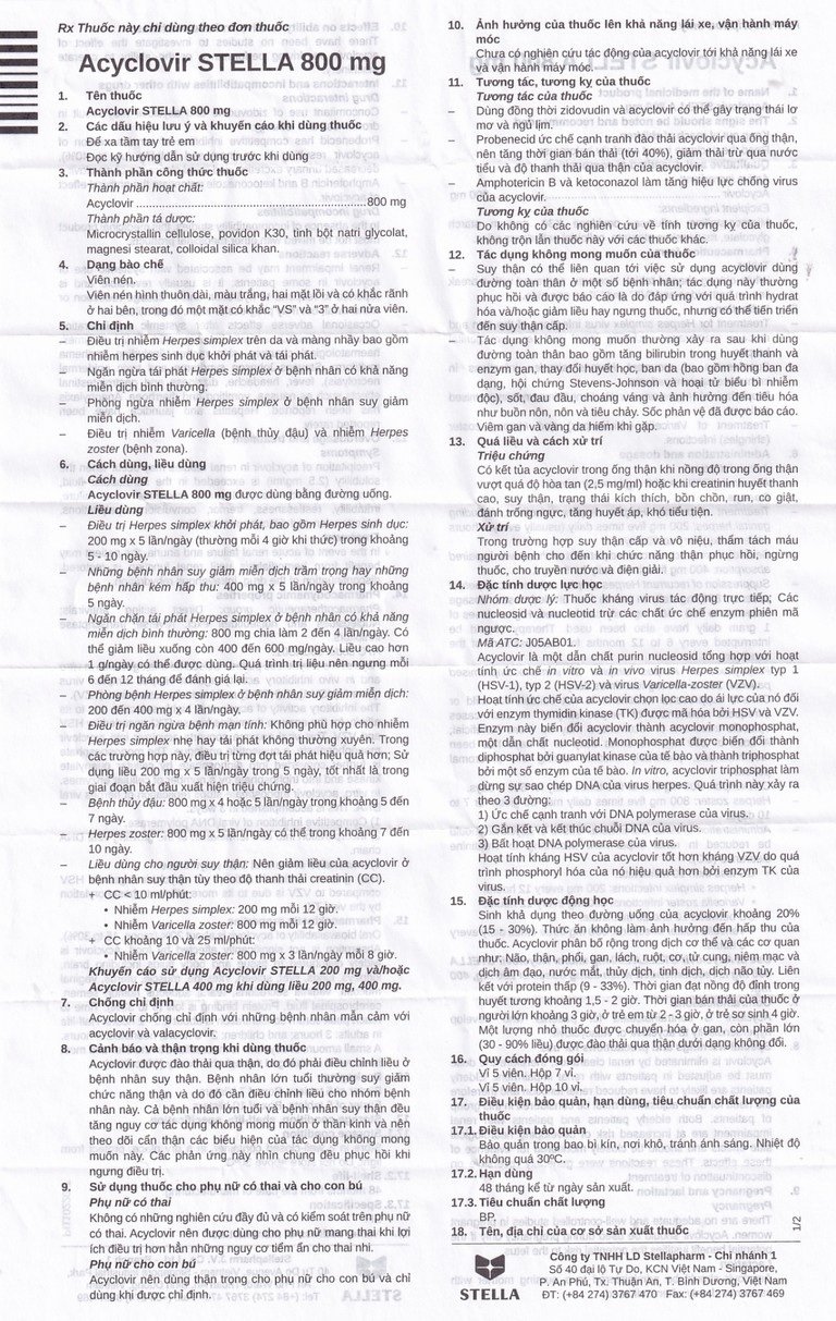 Cách dùng Thuốc Acyclovir Stella 800mg