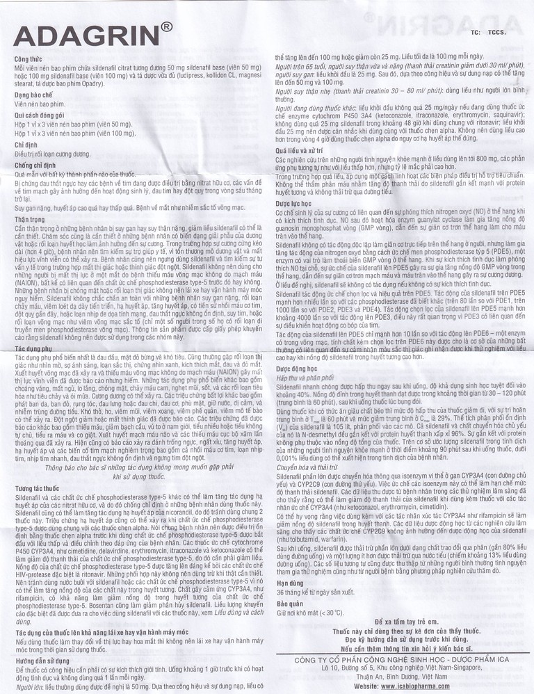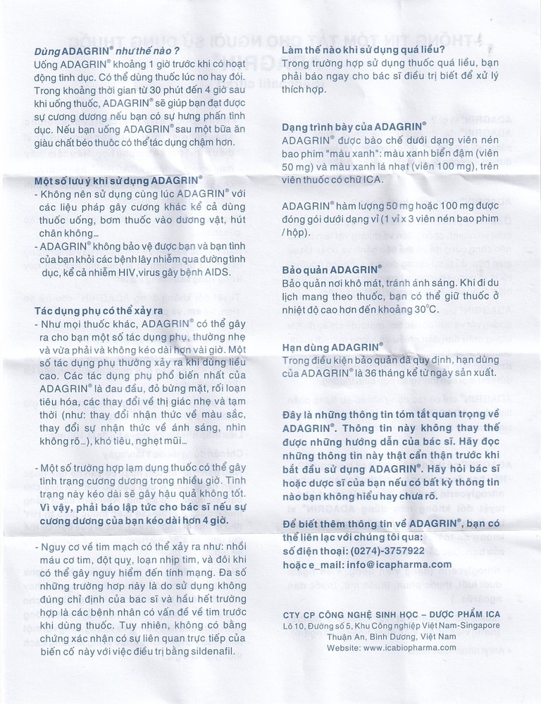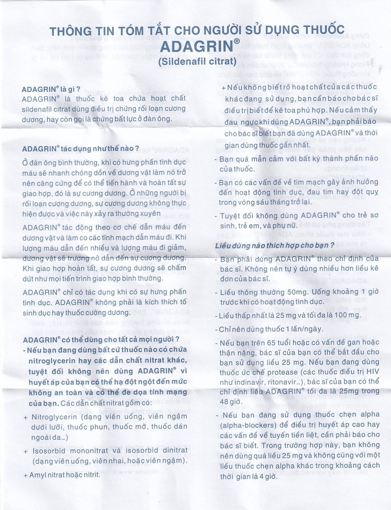 Cách dùng Thuốc Adagrin 50mg