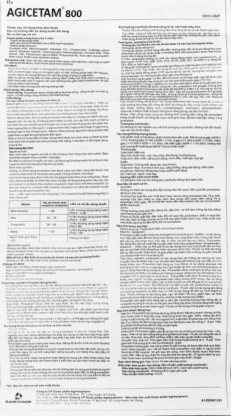 Cách dùng Thuốc Agicetam 800