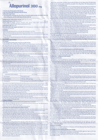 Viên Allopurinol 300 mg là dạng thuốc không được phép chia liều nhỏ hơn đơn vị liều 300mg. Vì vậy, trong trường hợp bệnh nhân sử dụng các liều khác với liều 300mg, cần hỏi ý kiến của bác sĩ hoặc dược sĩ để được hướng dẫn dạng dùng thích hợp).