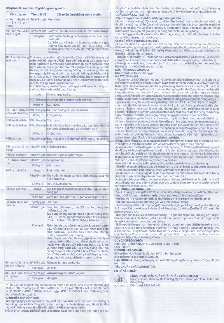 Thuốc Allopurinol 300mg Domesco điều trị tăng acid uric máu, sỏi thận (2 vỉ x 10 viên)
