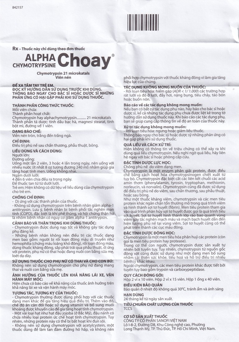 Công dụng của Thuốc Alpha Chymotrypsine Choay