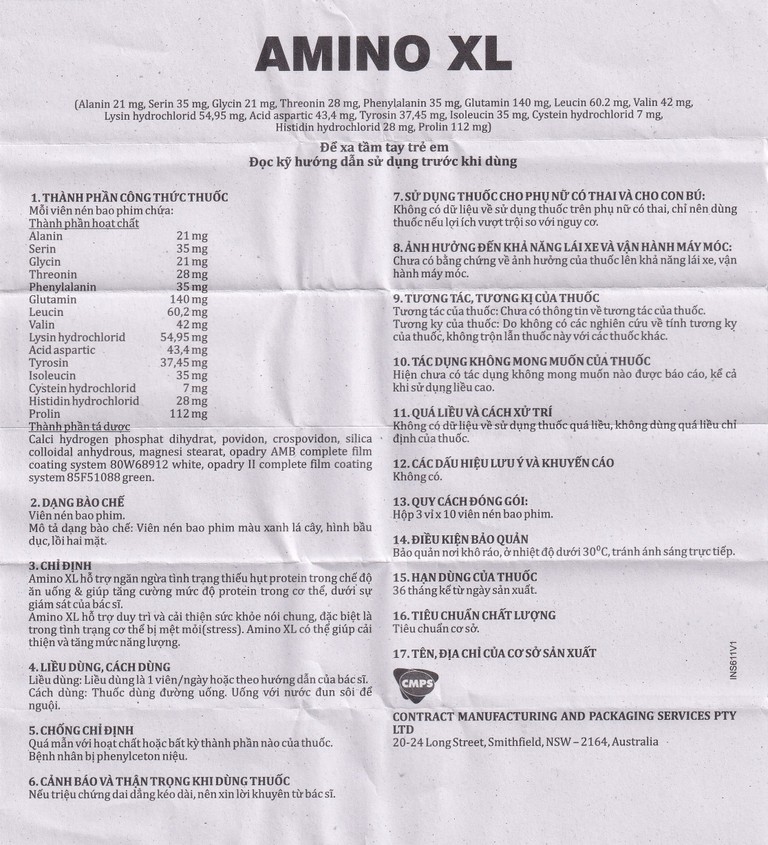 Thuốc Amino XL CMPS hỗ trợ ngăn ngừa thiếu hụt protein, duy trì và cải thiện sức khỏe (3 vỉ x 10 viên)