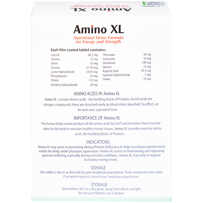 • Hỗ trợ duy trì và cải thiện sức khỏe nói chung, đặc biệt là trong tình trạng cơ thể bị mệt mỏi(stress). Amino XL có thể giúp cải thiện và tăng mức năng lượng.