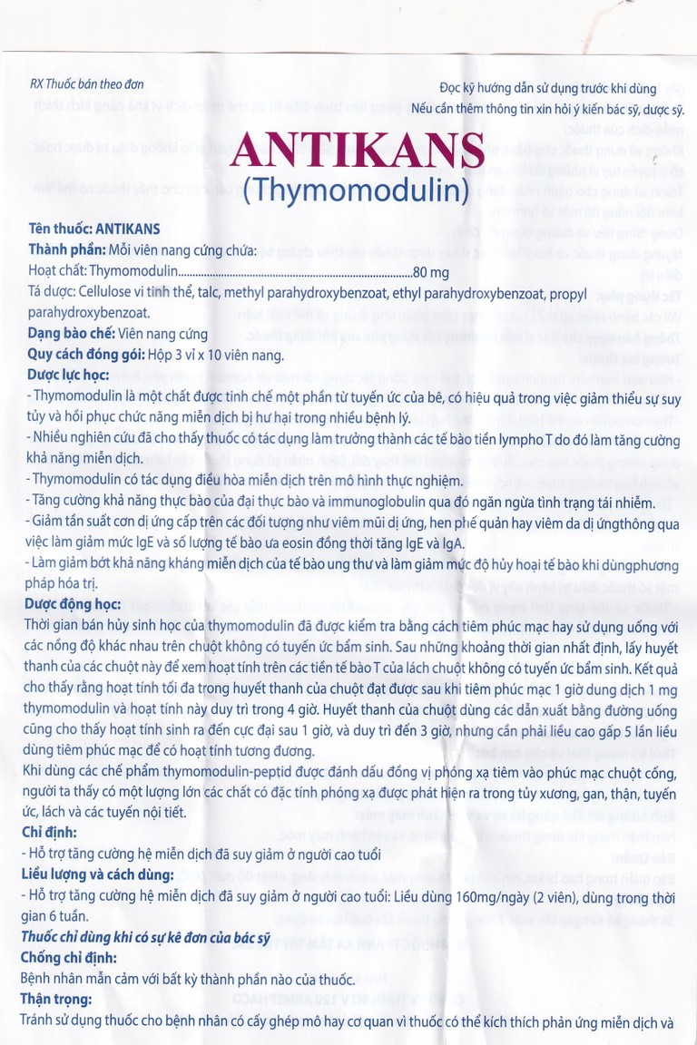 Thuốc Antikans được chỉ định dùng trong các trường hợp sau: