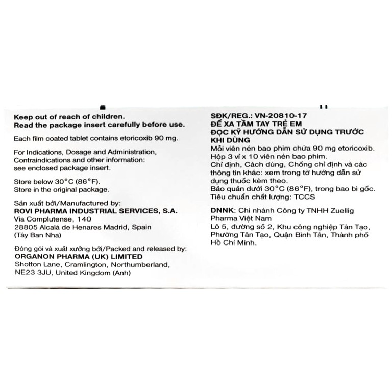Thuốc Arcoxia 90mg Organon điều trị cấp tính và mãn tính triệu chứng viêm xương khớp (3 vỉ x 10 viên)