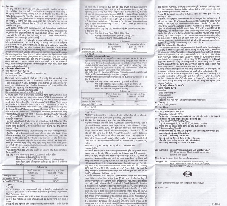 Điều này cho thấy rằng donepezil hydrochloride và/hoặc các chất chuyển hóa của nó có thể tồn tại trong cơ thể hơn 10 ngày.