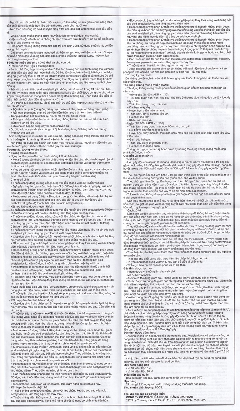 Acid acetylsalicylic được bài tiết vào sữa mẹ, không nên dùng trong thời kỳ cho con bú.