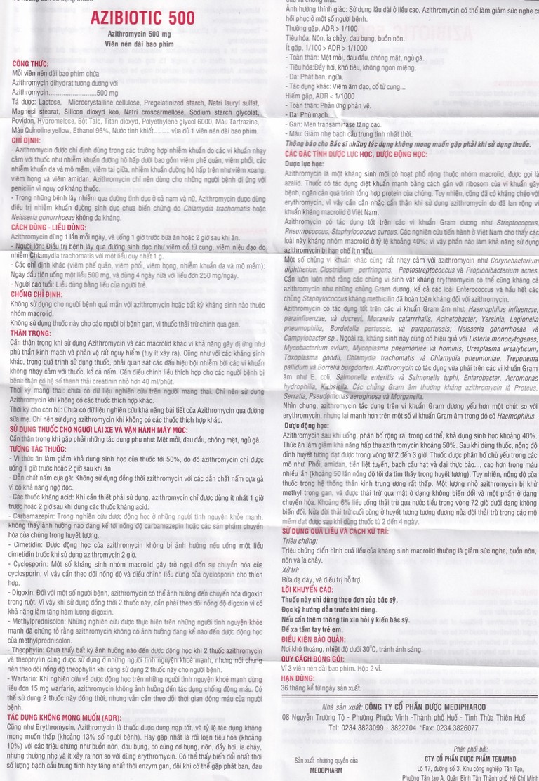 Cách dùng Thuốc Azibiotic 500