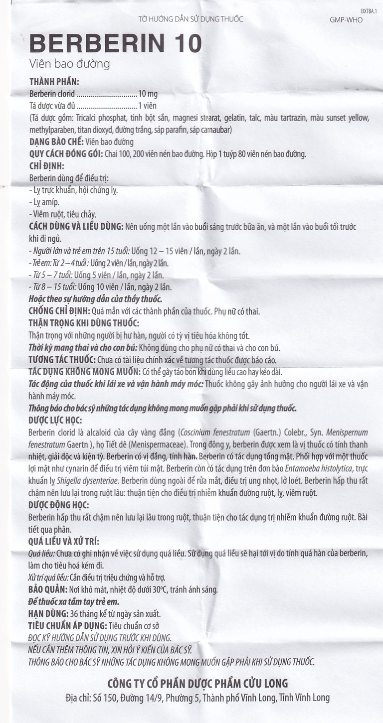 Cách dùng Thuốc Berberin 10mg