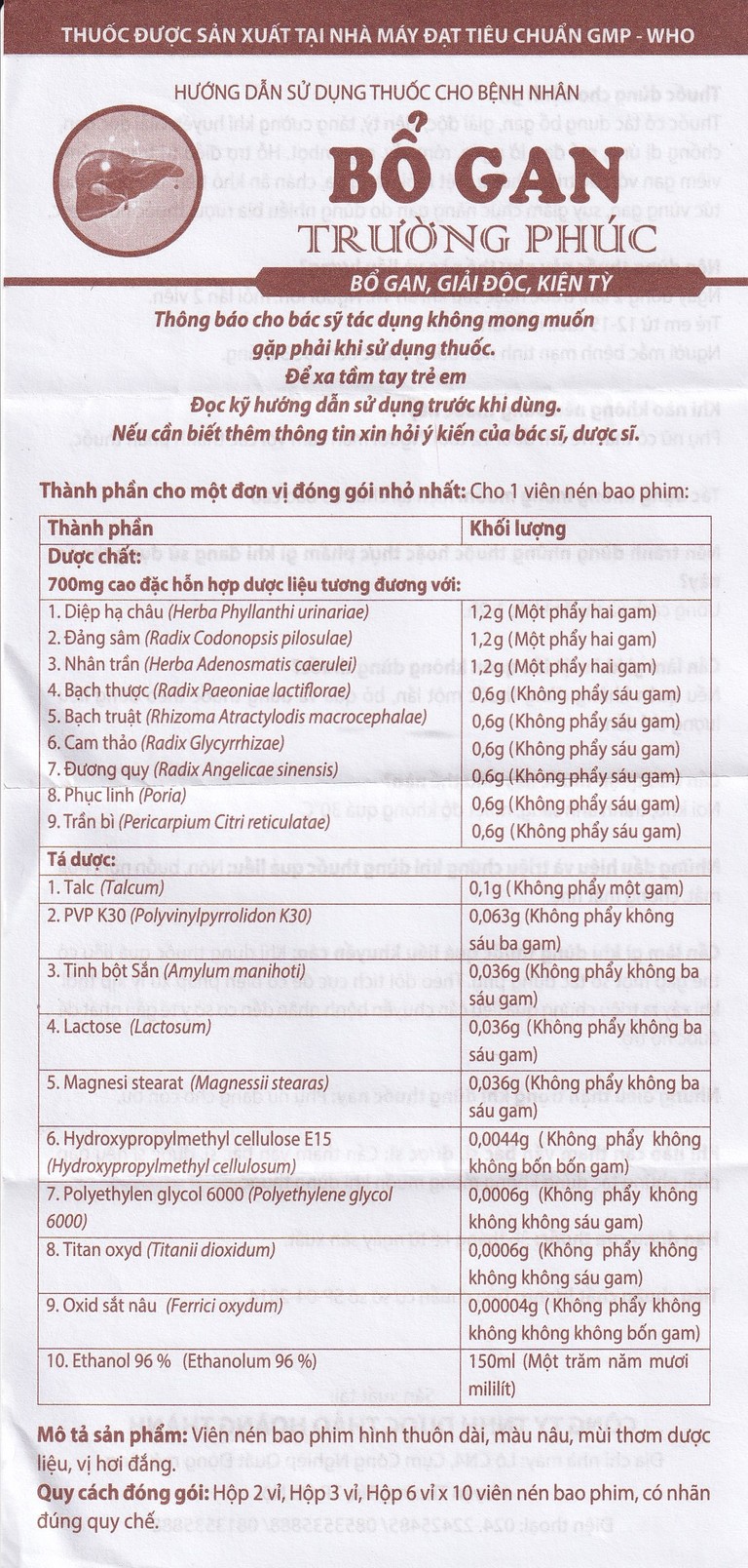 Thuốc Bổ Gan Trường Phúc giải độc gan, chống dị ứng, mày đay, lở ngứa (3 vỉ x 10 viên)