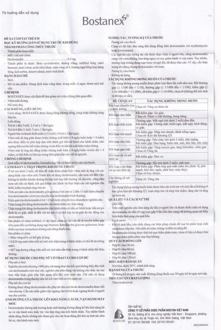 Thuốc Bostanex Boston giảm viêm mũi dị ứng, nổi mày đay (60ml)SẢN PHẨM