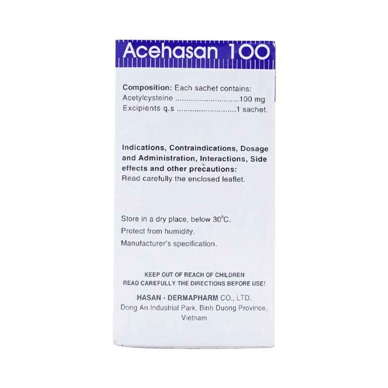 Thuốc bột Acehasan 100 Hasan làm loãng đờm trong các bệnh phế quản - phổi cấp và mãn tính (30 gói)Thuốc bột Acehasan 100 Hasan làm loãng đờm trong các bệnh phế quản – phổi cấp và mãn tính (30 gói)