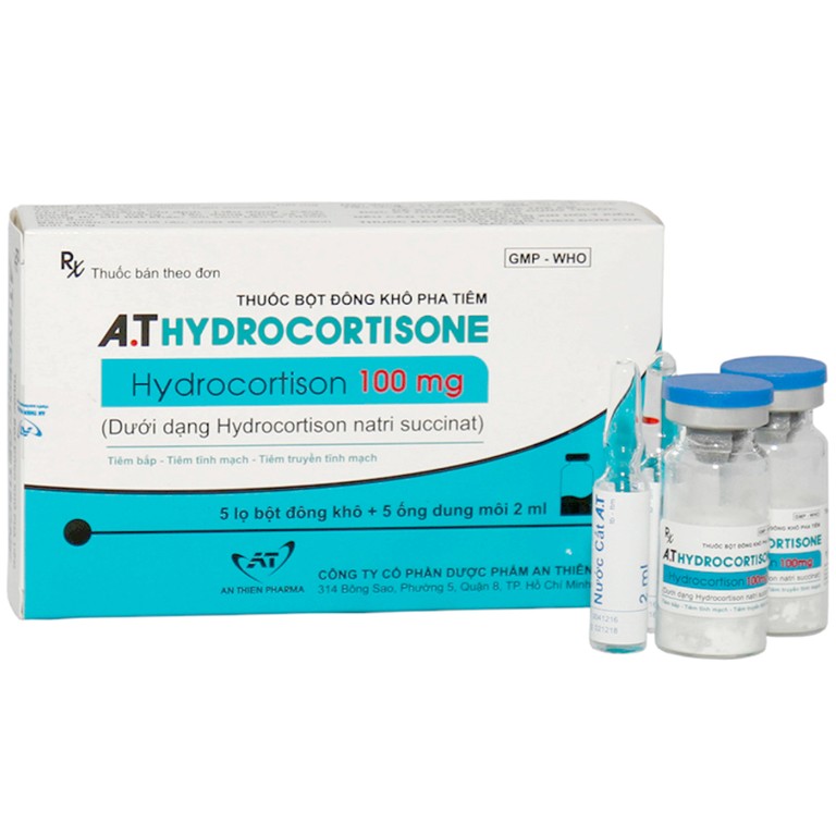 Thuốc A.T Hydrocortisone là bột đông khô pha tiêm chứa hoạt chất Hydrocortison (dưới dạng Hydrocortison natri succinat) cho lựa chọn để điều trị thay thế cho người bị suy vỏ thượng thận (suy vỏ thượng thận tiên phát và thứ phát, tăng sản thượng thận bẩm sinh hoặc hội chứng thượng thận sinh dục).