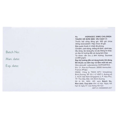 - Nếu trẻ bị tiểu đường, cần chú ý mỗi gói Hidrasec children 30mg chứa 2.899g sucrose.