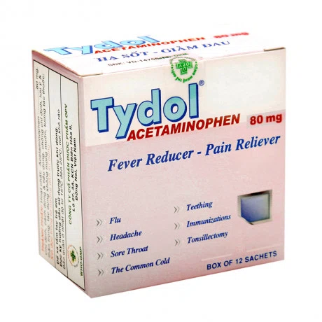 Thuốc bột Tydol 80mg giảm đau từ nhẹ đến vừa và hạ sốt (hộp 12 gói)