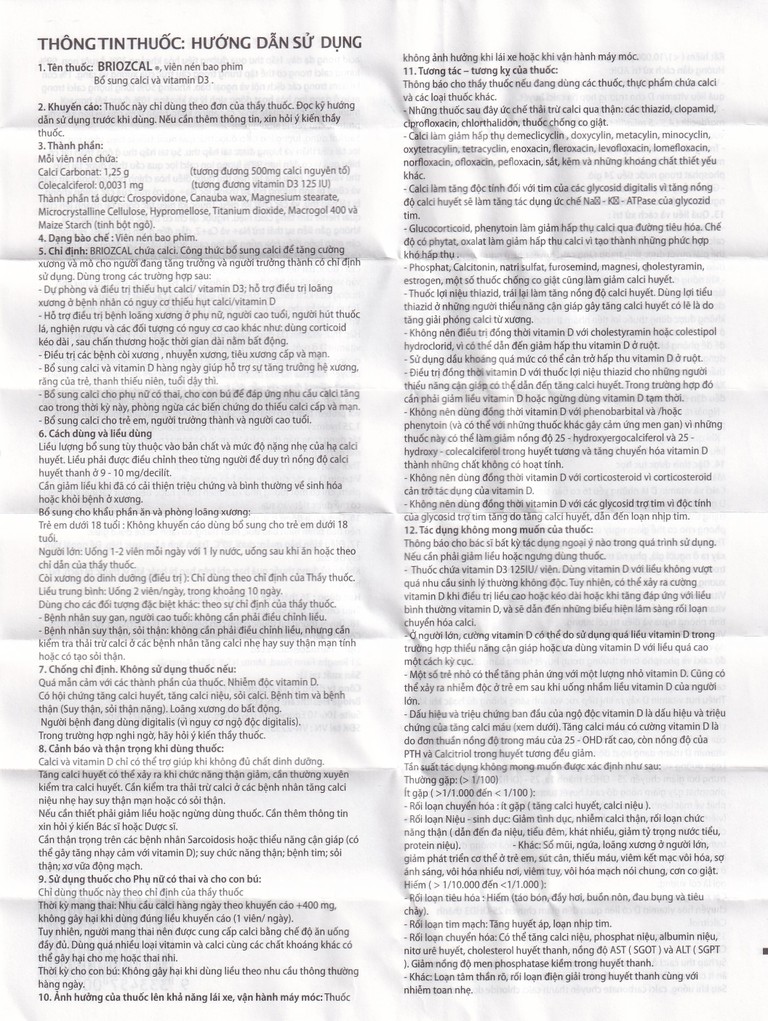 Briozcal chống còi xương, tăng sự hấp thu calci ở ruột, tác dụng lên sự biến dưỡng và hấp thu phospho calci của xương.