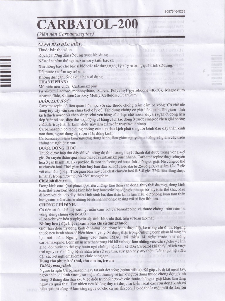 Cách dùng Thuốc Carbatol 200