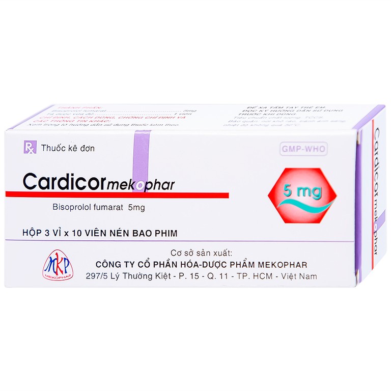 Thuốc Cardicor Mekophar 5 điều trị cao huyết áp, đau thắt ngực (3 vỉ x 10 viên)