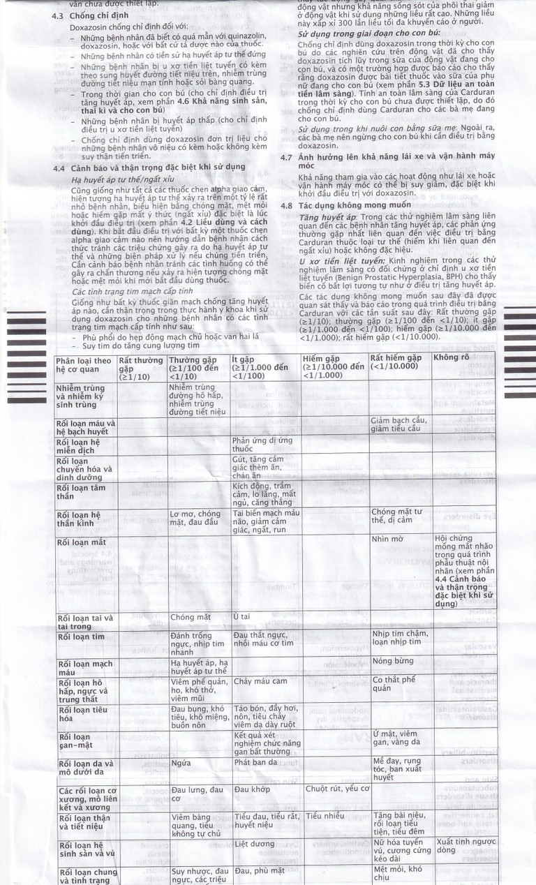 Khi sử dụng thuốc Carduran 2mg bạn có thể gặp các tác dụng không mong muốn (ADR).