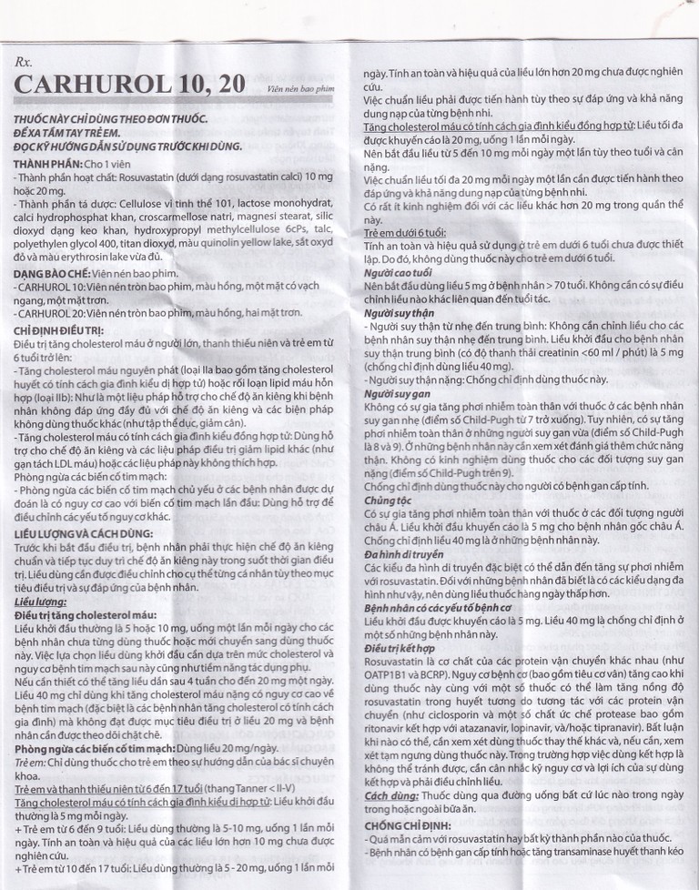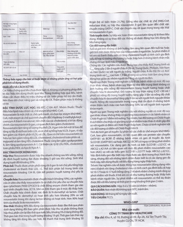 Thuốc Carhurol 10 BRV điều trị tăng cholesterol máu (3 vỉ x 10 viên)