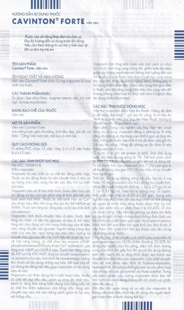 Mỗi viên Cavinton Forte chứa 10 mg vinpocetin là hoạt chất của thuốc