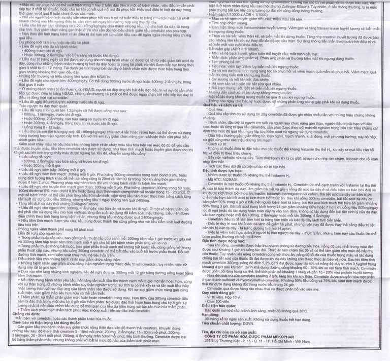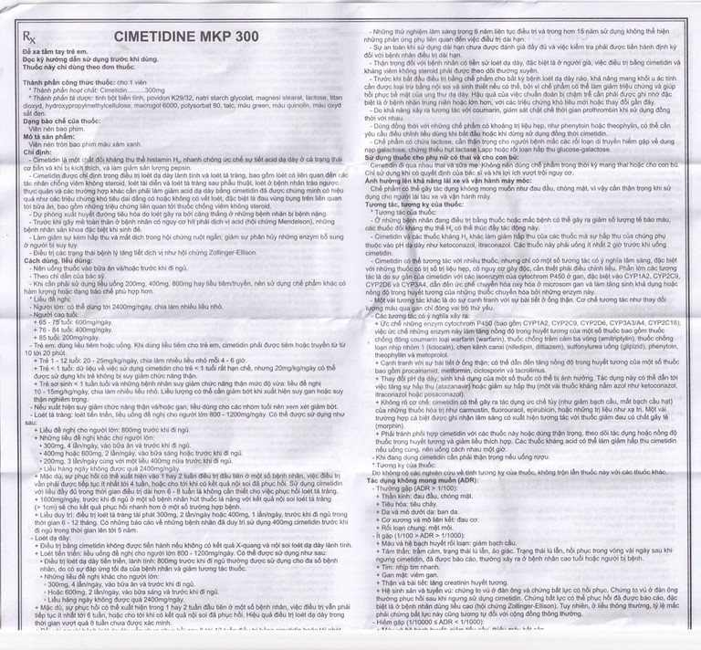 Cách dùng Thuốc Cimetidine MKP 300mg