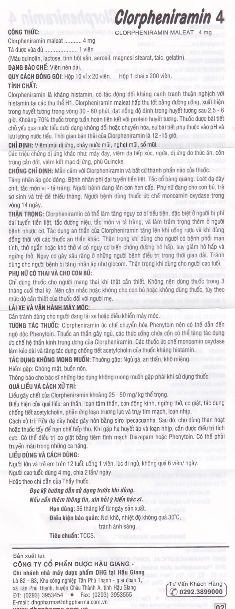 Giới thiệu thuốc Clorpheniramin 4 DHG: