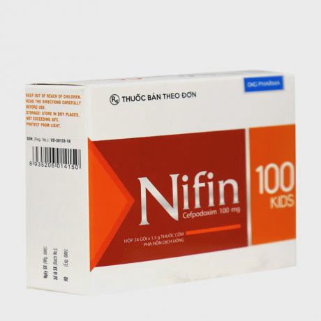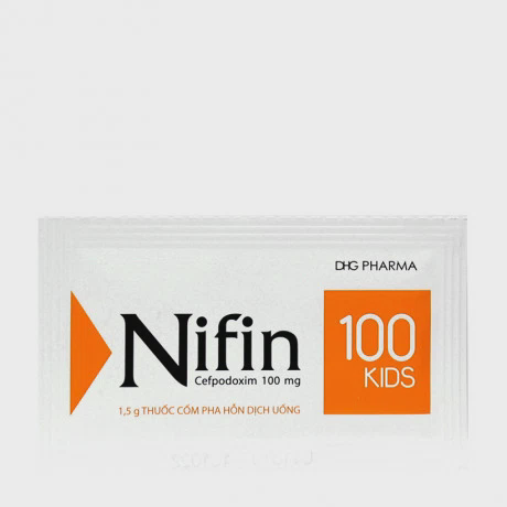 Thuốc cốm pha hỗn dịch uống Nifin 100mg Kids là một loại thuốc được sử dụng để điều trị nhiễm khuẩn do các chủng vi khuẩn nhạy cảm gây ra. Thuốc này chứa hoạt chất Cefpodoxim proxetil và được bào chế dưới dạng cốm pha hỗn dịch uống. Các tác dụng của Nifin 100 Kids bao gồm điều trị viêm phổi cấp tính, nhiễm khuẩn đường hô hấp, viêm tai giữa, và nhiễm khuẩn đường tiết niệu