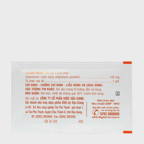 – Hoạt chất: Cefpodoxim (dưới dạng cefpodoxim proxetil) 100mg