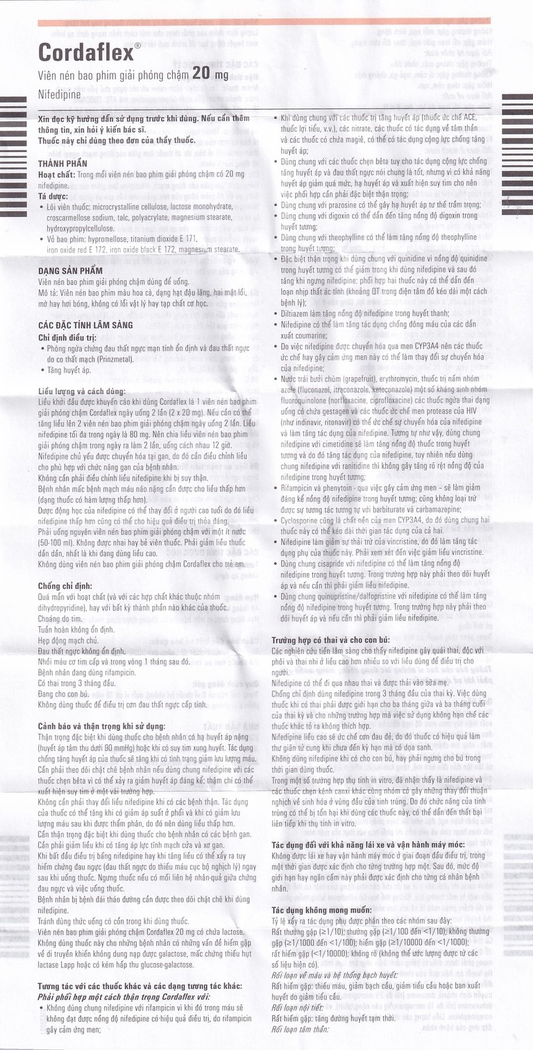 Công dụng của Thuốc Cordaflex 20mg