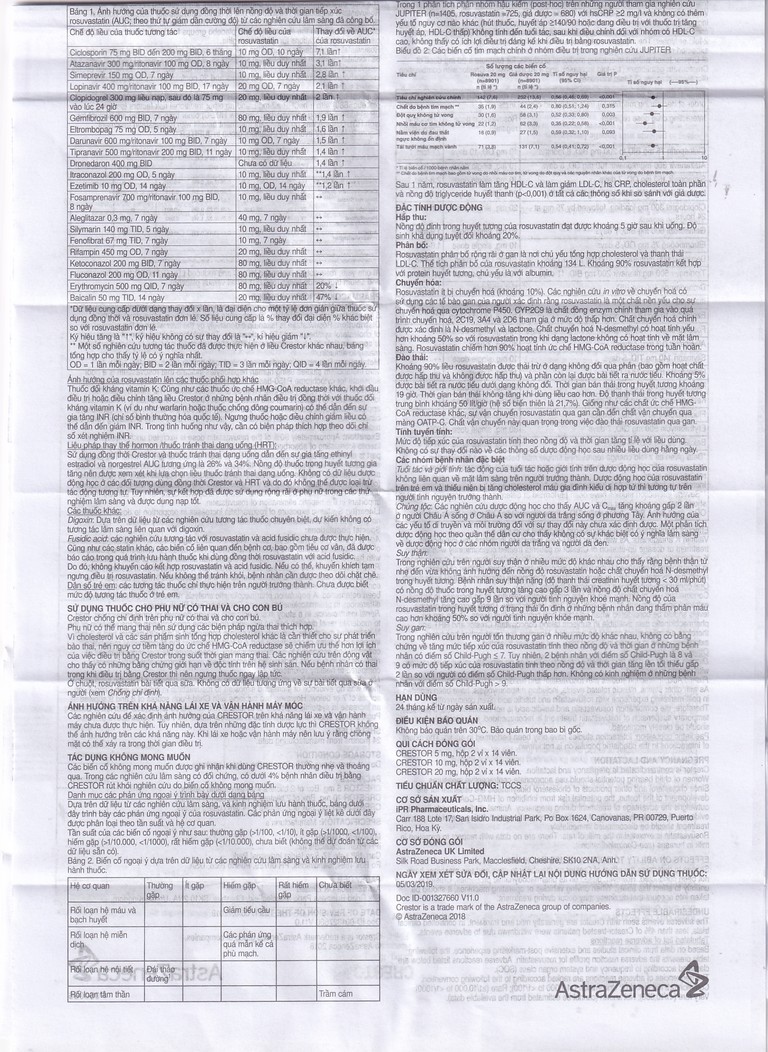 • Các thử nghiệm chức năng gan được khuyến cáo thực hiện trước khi điều trị và 3 tháng sau khi bắt đầu điều trị bằng Crestor. Nên ngừng hoặc giảm liều Crestor nếu nồng độ transaminase huyết thanh gấp 3 lần giới hạn trên của mức bình thường.