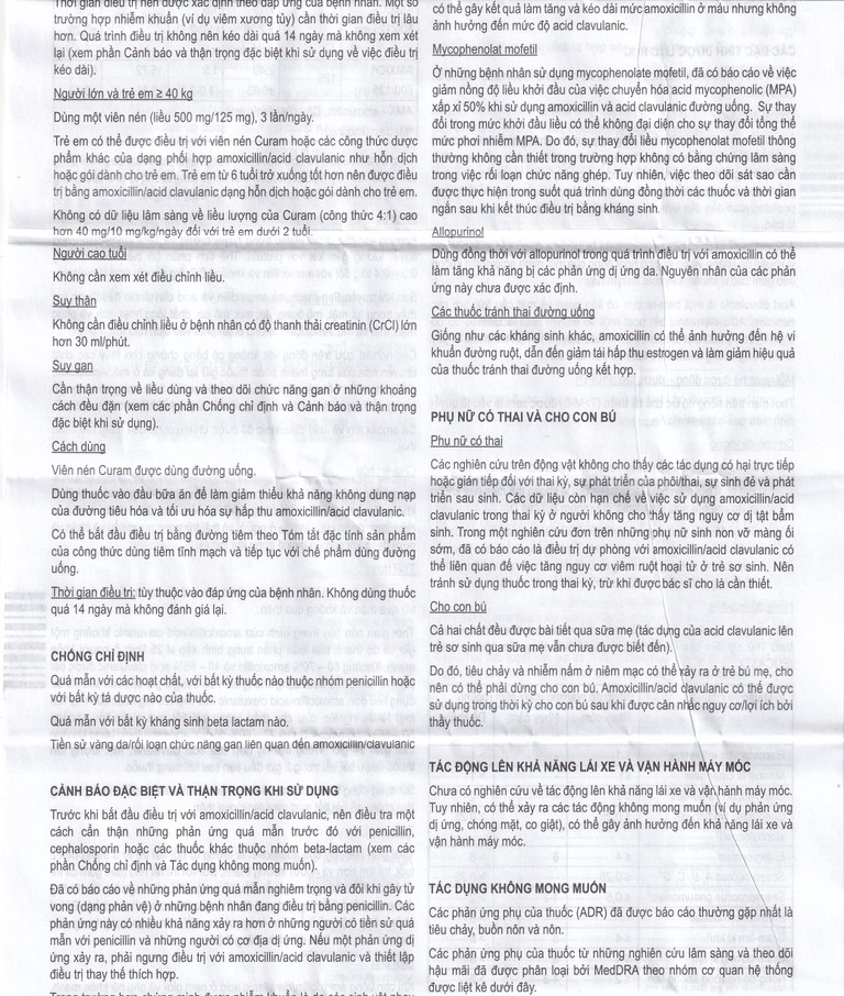 3 Buồn nôn thường gặp hơn, liên quan với các liều uống cao hơn. Nếu có phản ứng về đường tiêu hóa rõ ràng, có thể làm giảm các phản ứng này bằng cách uống Curam vào đầu bữa ăn.