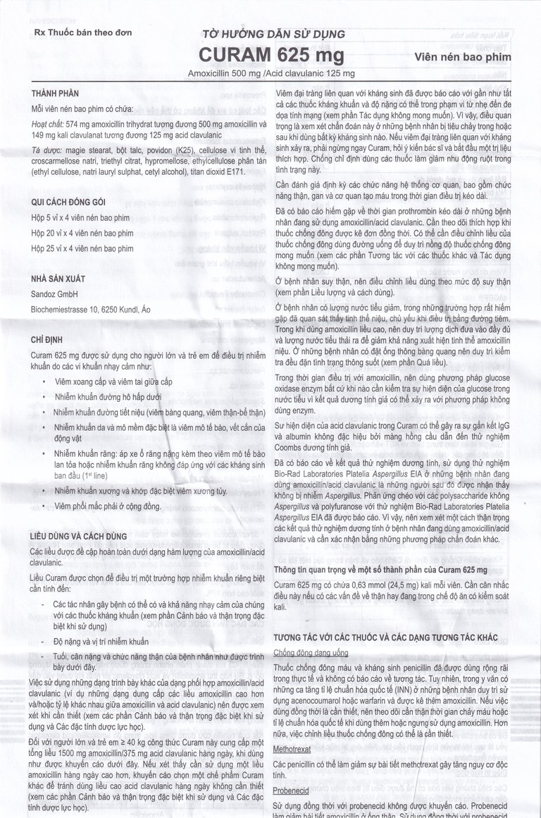Thông tin quan trọng về một số thành phần của Curam 625 mg
