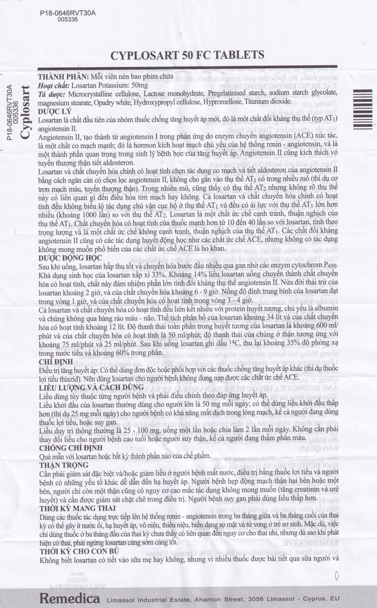 Thuốc Cyplosart 50 Remedica điều trị tăng huyết áp (3 vỉ x 10 viên)