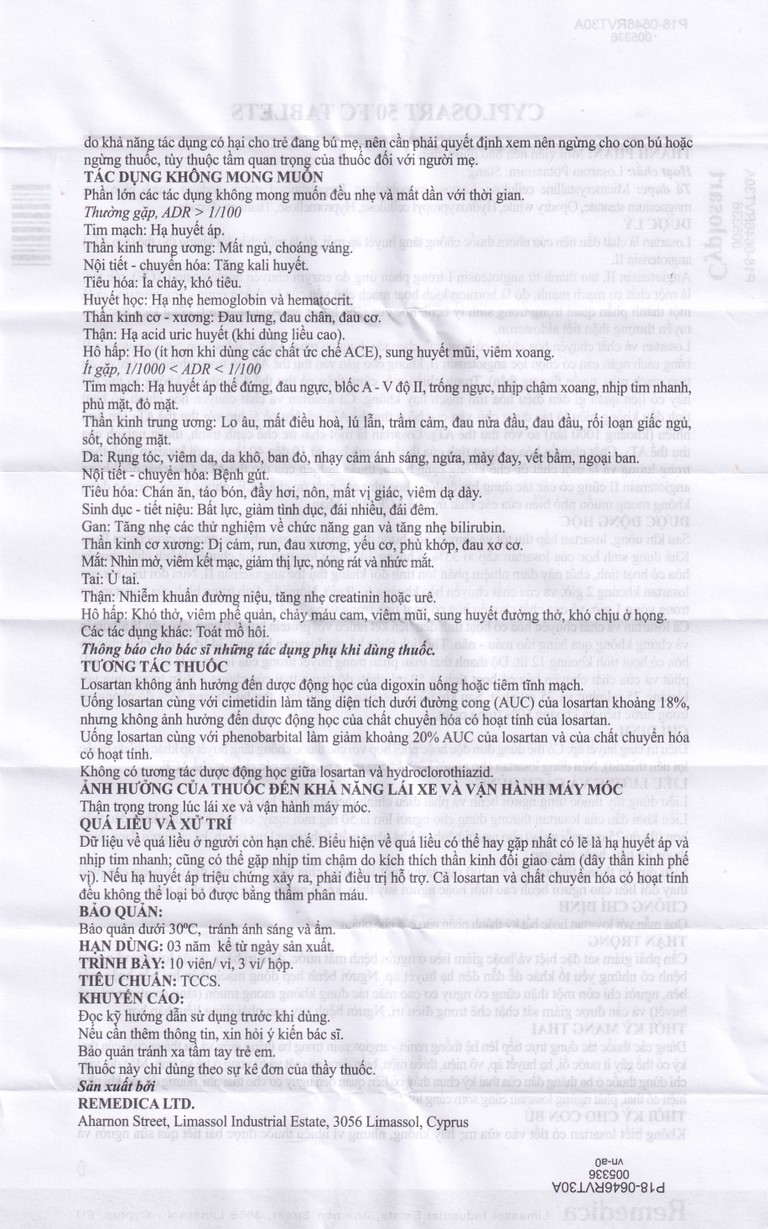 Cách dùng Thuốc Cyplosart 50