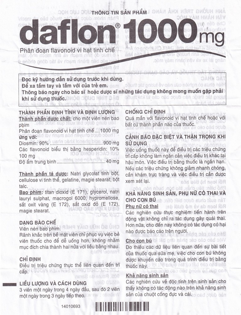 Daflon 1000mg chỉ định dùng trong các trường hợp điều trị triệu chứng thực thể liên quan đến trĩ cấp.